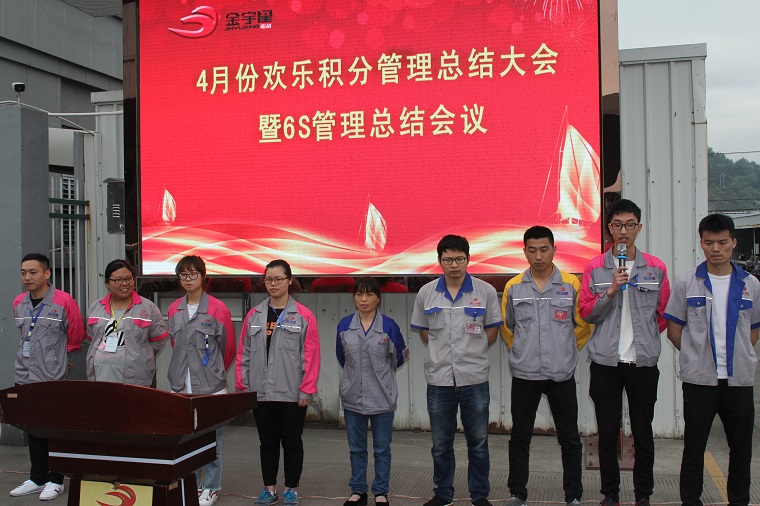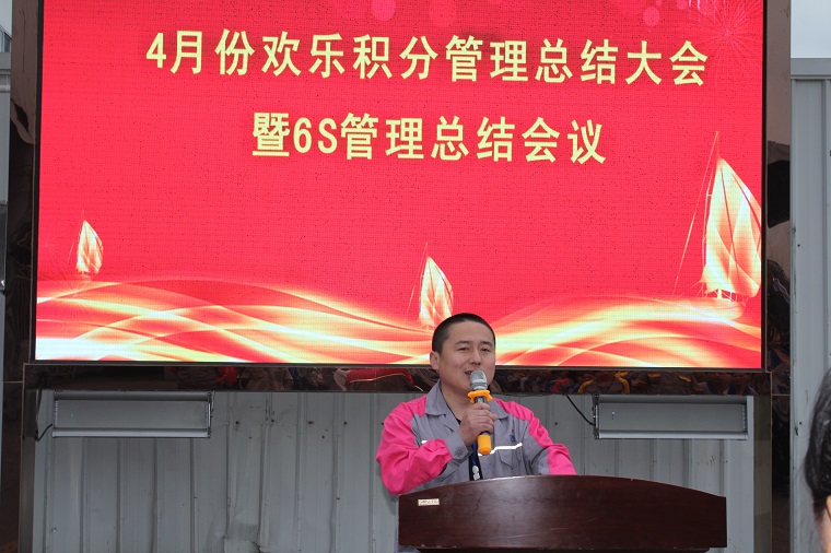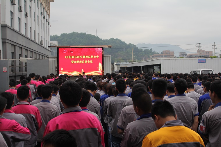五月五日上午,歡樂積分四月份表彰大會暨6S管理總結大會在公司LED顯示屏區域順利舉辦。