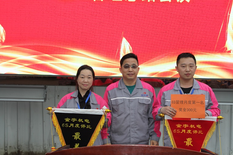 匯報結束后,由公司6S執行委員會會長、董事長助理代振坤為月度6S最佳和最差分別授予流動紅旗和流動黑旗,并如是說:歡樂積分開展兩個月以來,我們取得了不小的進步,尤其是四月份,整個積分氛圍得到了大幅度的提升,各層級、各課室都涌現出了許多值得表揚的人和事,但是存在的問題也不少。歡樂積分的主旨本身就是激發我們所有金宇人能夠充分的發揮主觀能動性,與公司的發展捆綁在一起,并長期走下去。第三方機構不僅要從過程中,還要從形式上去進一步完善好,爭取讓我們的積分管理體系早日步入正軌。在四月份的6S管理中,我們評選出了最優和最差,也授予了流動旗。為什么是流動的?因為你這個月做得好,并不代表下個月也是最佳,這個月是最差,說不準經過努力,下個月你就是最佳。成績只是代表過去,勝出的不要驕傲,最差的不要氣餒,只要我們努力,成績總會持續改善,我們的現場才會持續進步,我們的思想才會持續進步。金宇正處在高速發展的軌道上,只要我們大家心往一處想,勁往一處使,我相信不久的將來,我們都會實現自我的大夢想。
